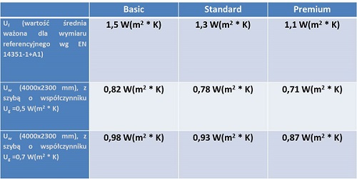 Zmiany w konstrukcji kształtowników pozwoliły na zdecydowaną poprawę przenikalności termicznej zestawień profili , co w zależności od wybranej opcji pozwala na uzyskanie średniej ważonej wartości współczynnika przenikania ciepła Uf= od 1,5 W(m2* K) w wersji Basic, poprzez Uf= 1,3 W(m2 * K) w wersji Standard do Uf= 1,1 W(m2* K) w wersji Premium. Mimo swoich ogromnych rozmiarów drzwi HST pozostają więc skuteczną barierą przed ucieczką ciepła.