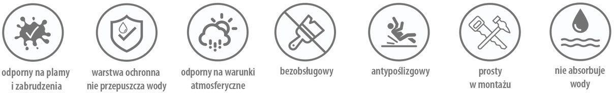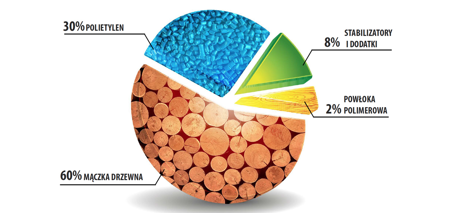 Dzięki unikalnemu połączeniu najlepszych właściwości drewna oraz tworzyw sztucznych otrzymujemy produkt o wysokiej odporności na warunki atmosferyczne idelaniesprawdzający się w naszych warunkach klimatycznych.