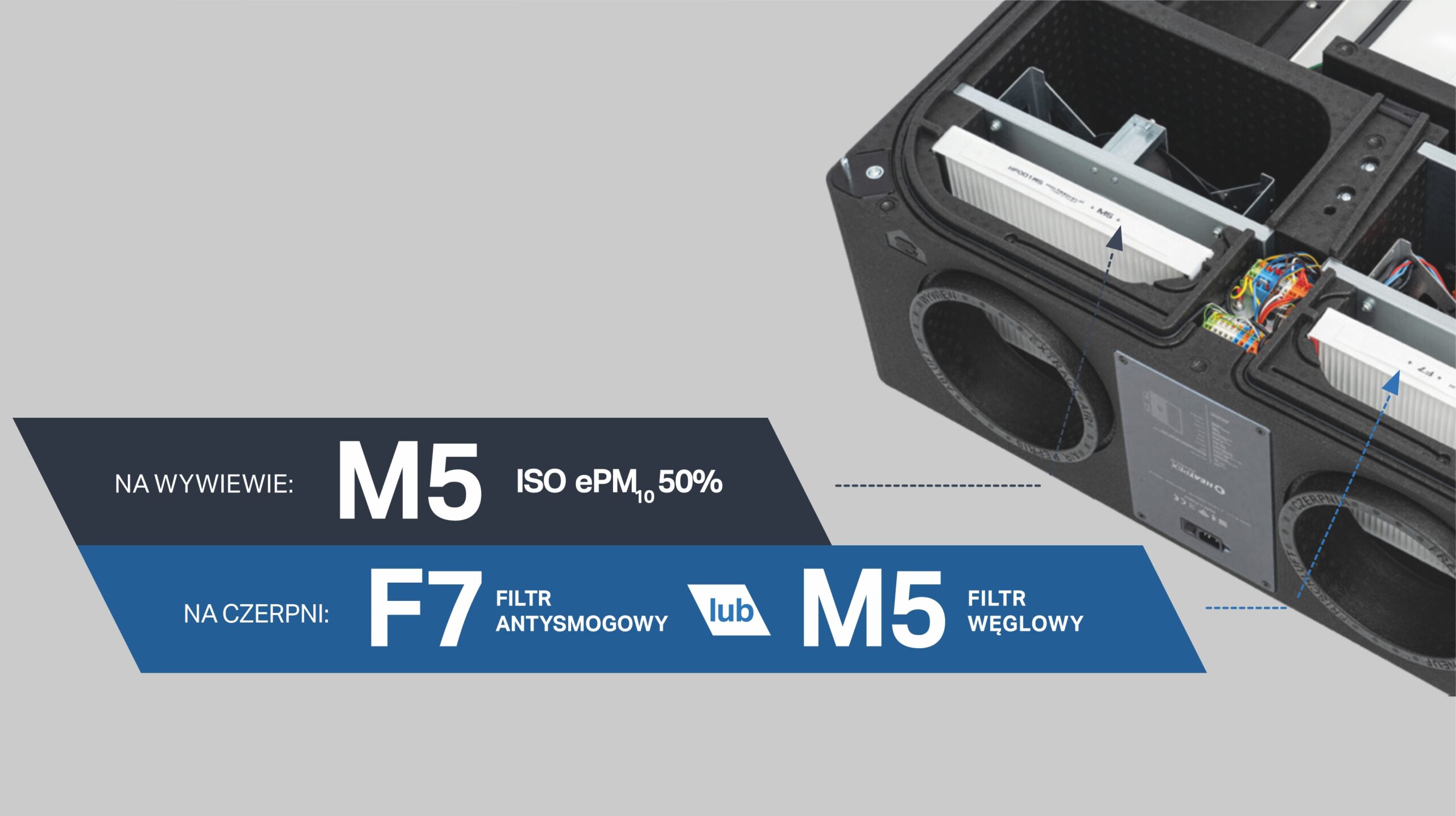 - skuteczność filtracji ISO ePM1 70% (F7) – zalecany na nawiew,