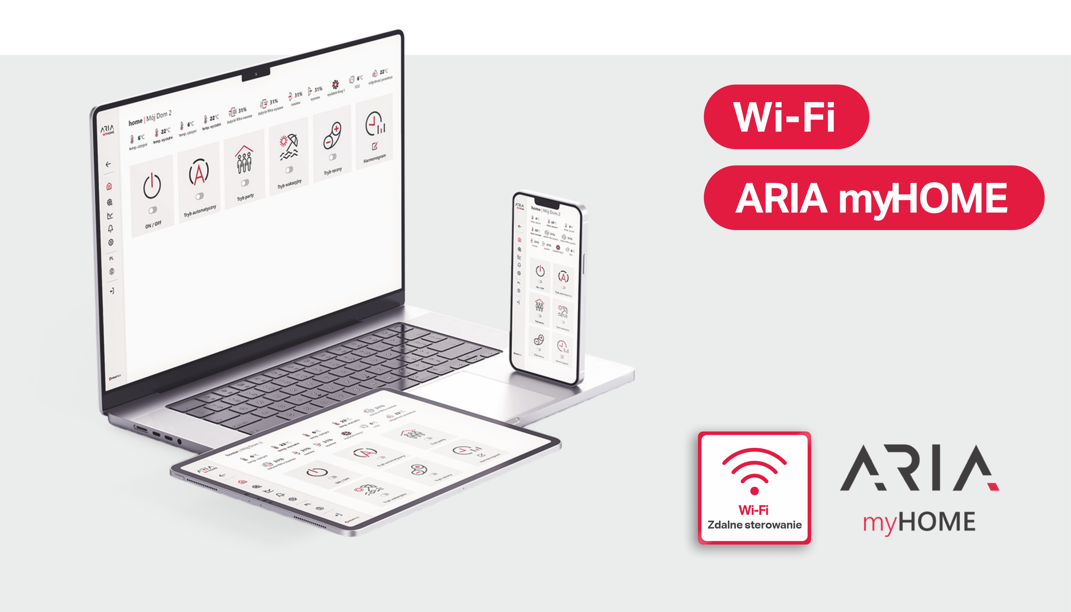Zaawansowane ustawienia i opcje sterowania dostępne są dzięki aplikacji na telefon i komputer: Aria myHOME. Istnieje także możliwość podpięcia urządzenia pod instalację Smart Home dzięki protokołowi Modbus.