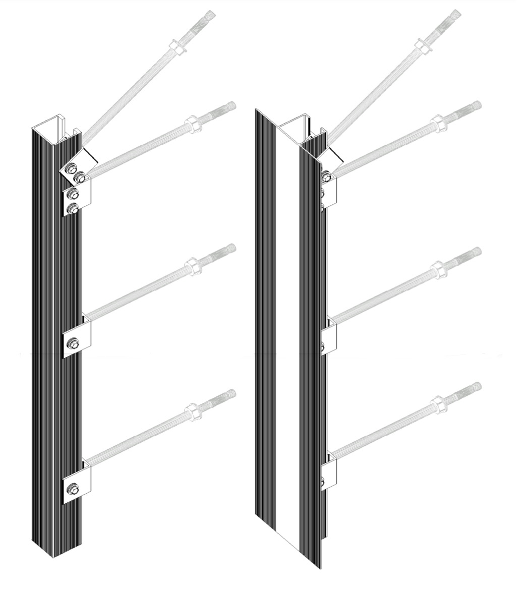 Długość prętów jest zależna od wysięgu elewacji. Ich średnice natomiast dobiera się na podstawie obliczeń statycznych w zależności od sił działających na podkonstrukcję. Standardowo dla prętów nośnych, przenoszących obciążenia pionowe od ciężaru elewacji oraz poziome od ssania i parcia wiatru, stosuje się średnicę 10 lub 12 mm. Dla prętów przenoszących jedynie siły poziome natomiast standardowo stosuje się średnicę 8 mm. Przy dużych obciążeniach pionowych jeden pręt nośny można zakotwić pod kątem, co znacznie zwiększa wytrzymałość całego układu.